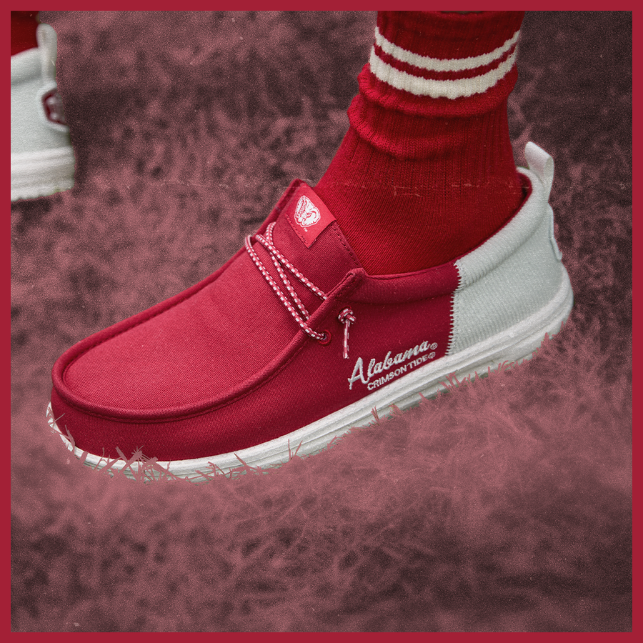 It’s time to take gameday tradition to a whole new level with the most crimson shoes to hit campus. From the Elephant Stomp to the Walk of Champions and Saban Field. these slip ons stay true. Classic canvas and corduroy. Iconic school colors. Team spirit details. Tailgate-ready comfort. And all that Bama rizz. Roll Tide!